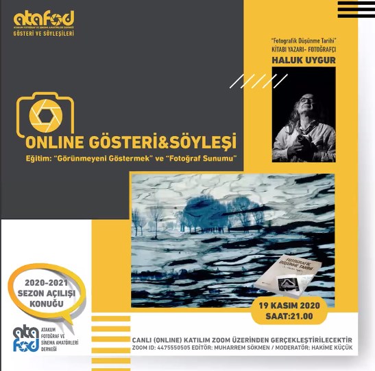 Altınoran Sanat ve Düşünce Derneği Başkanı Dr.S. Haluk Uygur, Samsun’da kurulu bulunan Atakum Fotoğraf ve Sinema Amatör Derneği’nin (ATAFOD) düzenlediği online gösteri ve söyleşi etkinliğinde “Fotoğrafik Düşünme Tarihi”ni anlattı.